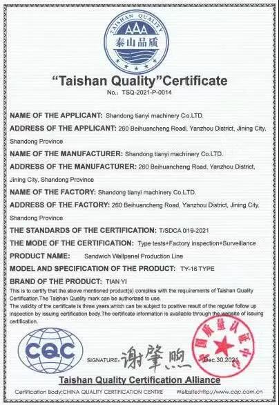 近日,山東天意機(jī)械股份有限公司榮獲“泰山品質(zhì)”認(rèn)證證書,這是濟(jì)寧市企業(yè)繼山東如意毛紡服裝集團(tuán)股份有限公司、通亞汽車制造有限公司之后,再次獲得“泰山品質(zhì)”認(rèn)證證書。
