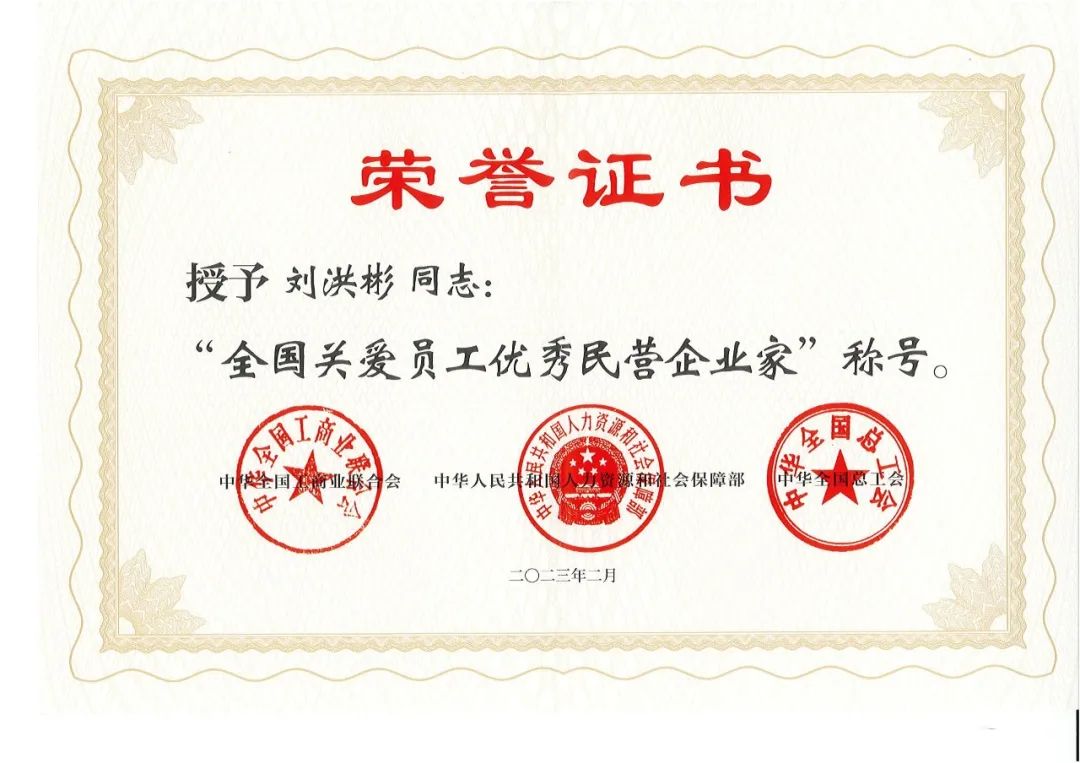 劉洪彬董事長(zhǎng)在山東分會(huì)場(chǎng)參會(huì)并受到表彰,獲得全國(guó)關(guān)愛(ài)員工優(yōu)秀民營(yíng)企業(yè)家稱(chēng)號(hào)。