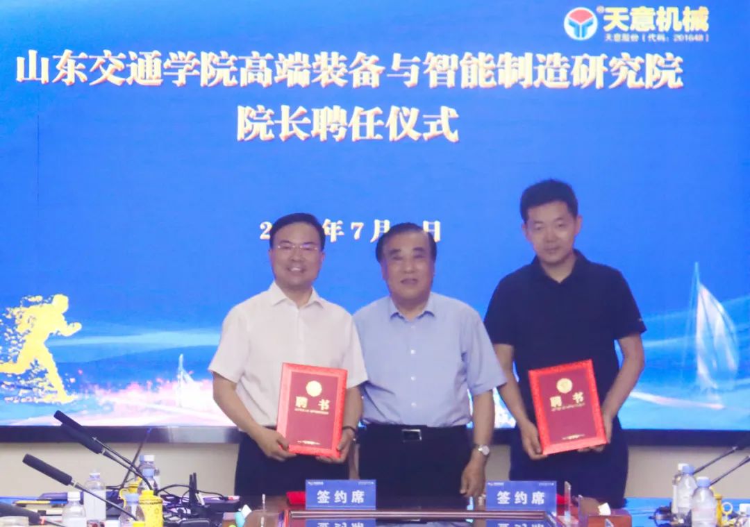 劉洪彬董事長被聘任為山東交通學(xué)院高端裝備與智能制造研究院院長,張林被聘任為山東交通學(xué)院高端裝備與智能制造研究院副院長,王煥斌為劉洪彬、張林頒授頒發(fā)山東交通學(xué)院高端裝備與智能制造研究院聘書。