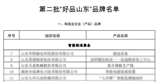 9月12日,由山東省市場(chǎng)監(jiān)管局會(huì)同省委宣傳部、省發(fā)展改革委、淄博市政府共同主辦的山東省2023年“質(zhì)量月”啟動(dòng)儀式在淄博舉行。活動(dòng)發(fā)布第二批“好品山東”品牌遴選名單,共計(jì)105個(gè)品牌,天意機(jī)械憑借復(fù)合墻板生產(chǎn)線入選“好品山東”品牌遴選名單。