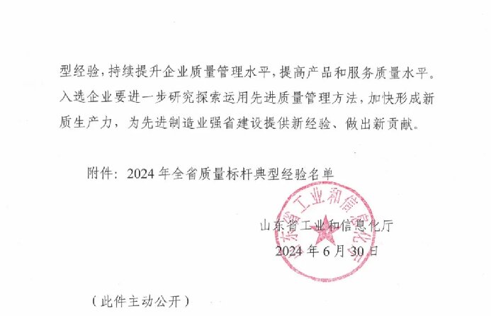 全省質(zhì)量標(biāo)桿是由山東省工信廳主導(dǎo),山東省質(zhì)量協(xié)會(huì)組織評(píng)選的省級(jí)榮譽(yù),旨在強(qiáng)化提升企業(yè)質(zhì)量管理水平,推動(dòng)培育和建設(shè)產(chǎn)品卓越、品牌卓越、創(chuàng)新領(lǐng)先、治理現(xiàn)代、具有核心競(jìng)爭(zhēng)力的一流企業(yè),代表各行業(yè)、各領(lǐng)域的優(yōu)秀質(zhì)量示范。2024年主要聚焦質(zhì)量管理體系升級(jí)、關(guān)鍵過(guò)程質(zhì)量控制、產(chǎn)業(yè)鏈供應(yīng)鏈韌性與安全和質(zhì)量管理數(shù)字化進(jìn)行遴選。