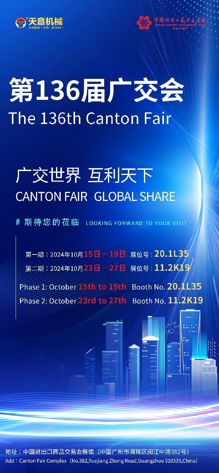 第136屆廣交會的日益臨近,天意機(jī)械已經(jīng)整裝待發(fā),期待在展會期間與全球客戶探討合作機(jī)會,推動雙方共同發(fā)展。未來,天意機(jī)械將繼續(xù)秉承“質(zhì)量第一、客戶至上”的理念,不斷提升自身的技術(shù)實(shí)力和市場競爭力,為全球客戶提供更加優(yōu)質(zhì)的產(chǎn)品和服務(wù)。