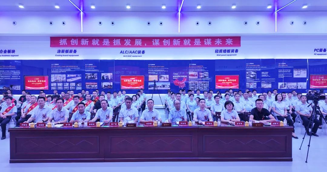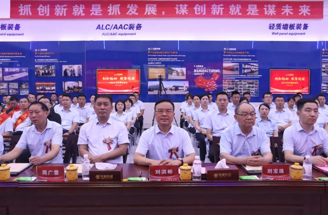 最后,集團(tuán)董事長(zhǎng)劉洪彬做集團(tuán)總結(jié)及未來(lái)展望。劉總指出,天意上半年發(fā)展呈現(xiàn)三方面特點(diǎn),第一,創(chuàng)新驅(qū)動(dòng):以創(chuàng)新為市場(chǎng)回暖積蓄力量。上半年,研發(fā)了模塊智能化柔性生產(chǎn)線,為模塊化房屋建造提供智能裝備,研發(fā)了光伏清掃機(jī)器人,提供光伏電站清潔解決方案。天意榮獲山東省五一勞動(dòng)獎(jiǎng)狀,入選山東省先進(jìn)級(jí)智能工廠、省級(jí)專家服務(wù)基地,卓越也建成了新的工業(yè)互聯(lián)網(wǎng)展廳。上半年,產(chǎn)學(xué)研合作邁出新步伐,天意與山東大學(xué)共同舉辦了“天意杯”山東大學(xué)第五屆智造未來(lái)創(chuàng)新大賽,山東交通學(xué)院黨委書記王偉一行、山東建筑大學(xué)校黨委常委、副校長(zhǎng)邱立平一行來(lái)集團(tuán)參觀座談,共謀發(fā)展新篇章。第二,國(guó)際市場(chǎng):用中國(guó)智造點(diǎn)亮"一帶一路"。上半年,天意參加了俄羅斯國(guó)際工程機(jī)械展、廣交會(huì)、德國(guó)寶馬展、漢諾威工業(yè)博覽會(huì)、沙特阿拉伯利雅得五大行業(yè)展覽會(huì)等重量級(jí)國(guó)際展會(huì)。塔吉克斯坦總統(tǒng)親臨考察的墻板項(xiàng)目,成為當(dāng)?shù)鼐G色建筑的示范工程。與俄羅斯客戶簽訂了ALC和PC大單。這些突破不僅帶來(lái)了42%的出口增長(zhǎng),更讓中國(guó)建材高端裝備贏得了世界尊重。第三,強(qiáng)勢(shì)突圍:三大引擎驅(qū)動(dòng)未來(lái)發(fā)展。在鞏固裝配式建筑裝備主業(yè)的同時(shí),培育了三大新增長(zhǎng)極,分別是光伏清掃機(jī)器人(已具備智能導(dǎo)航、自主清潔、高效節(jié)能等特點(diǎn))、智慧物流(目前已有京東、拼多多、好想來(lái)等大型企業(yè)入駐)、新能源業(yè)務(wù)板塊(天意已實(shí)現(xiàn)了80%的綠電生產(chǎn),正在搭建離網(wǎng)儲(chǔ)能系統(tǒng),未來(lái)還將建設(shè)微電網(wǎng)和虛擬電廠)。