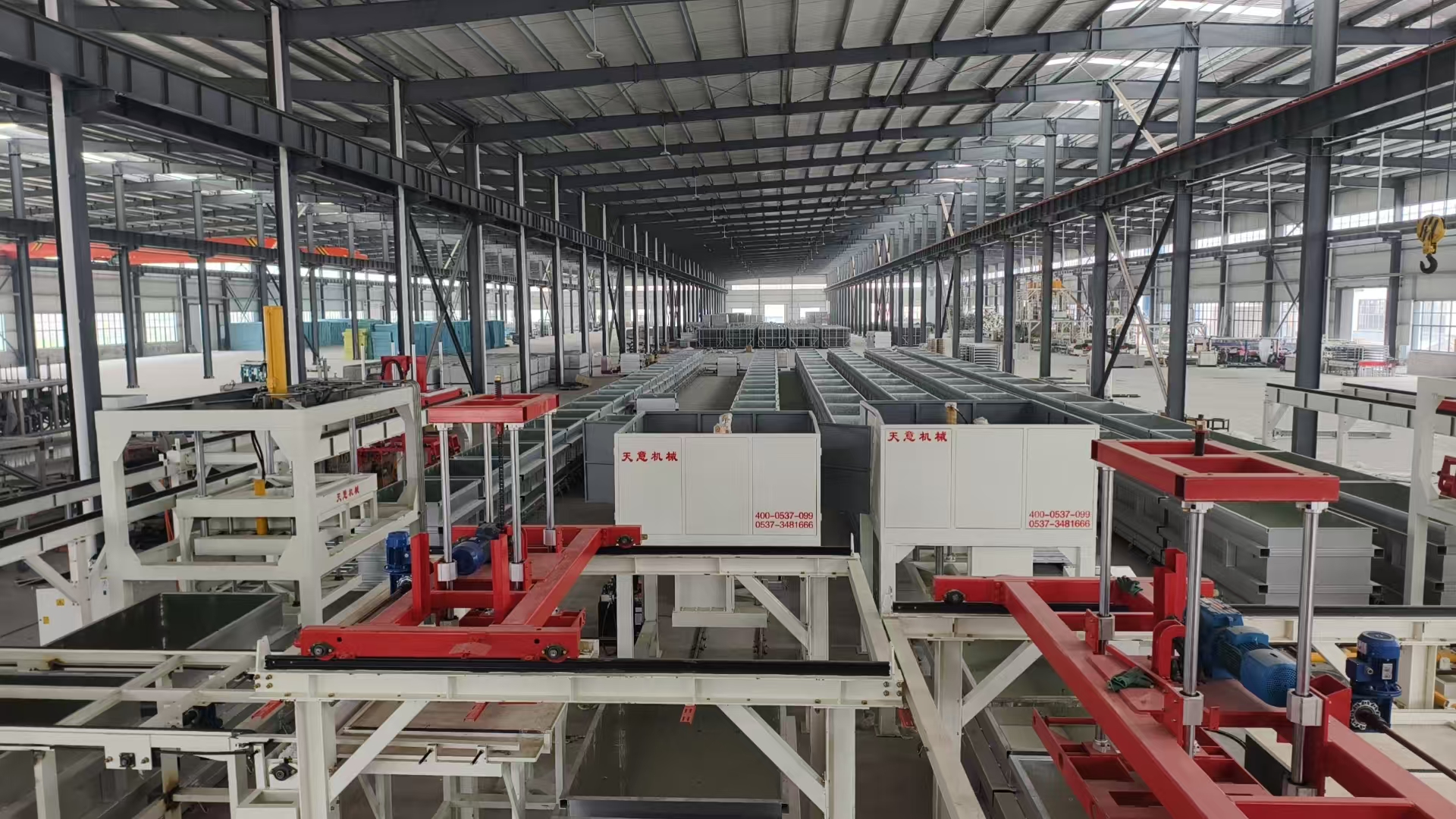 勻質(zhì)生產(chǎn)線主要生產(chǎn)工序包括:原料儲(chǔ)存、原材料自動(dòng)輸送和計(jì)量系統(tǒng)、攪拌系統(tǒng)、澆注系統(tǒng)、壓膜成型系統(tǒng)、養(yǎng)護(hù)、出塊系統(tǒng)、自然養(yǎng)護(hù)、切割系統(tǒng)、成品碼垛系統(tǒng)等。