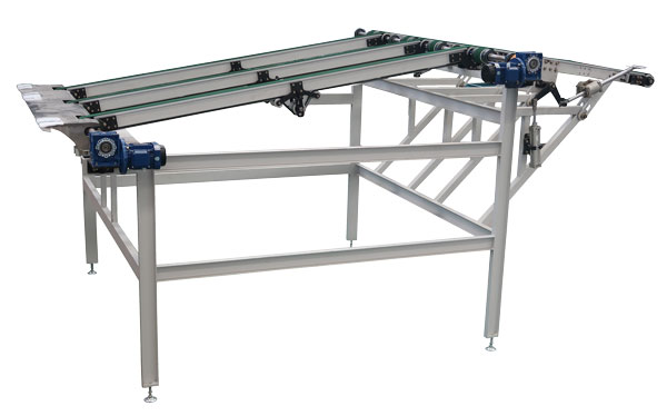 適用于折頁(yè)機(jī)烘干后的出板工序。 由拉板輸送和下坡輸送組成。